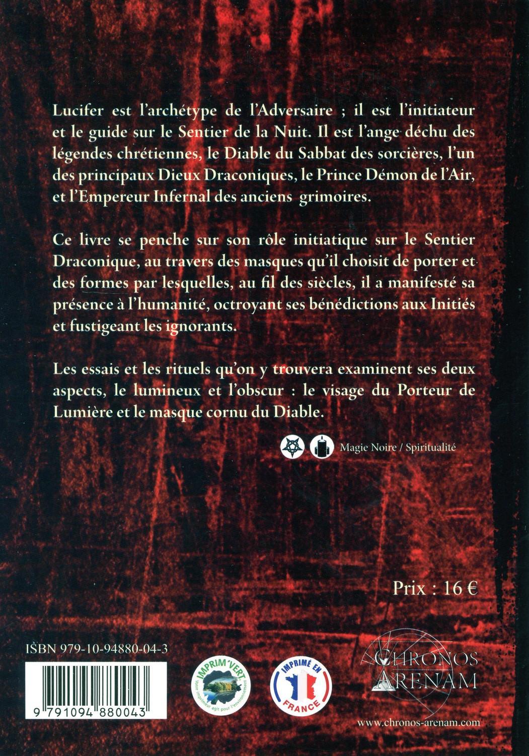 Lucifer est l'archétype de l'Adversaire ; il est l'initiateur et le guide sur le Sentier de la Nuit. Il est l'ange déchu des légendes chrétiennes, le Diable du Sabbat des sorcières, l'un des principaux Dieux Draconiques, le Prince Démon de l'Air, et l'Empereur Infernal des anciens grimoires. Ce livre se penche sur son rôle initiatique sur le Sentier Draconique, au travers des masques qu'il choisit de porter et des formes par lesquelles, au fil des siècles, il a manifesté sa présence à l'humanité, octroyant ses bénédictions aux Initiés et fustigeant les ignorants. Les essais et les rituels qu'on y trouvera examinent ses deux aspects, le lumineux et l'obscur : le visage du Porteur de Lumière et le masque cornu du Diable.
