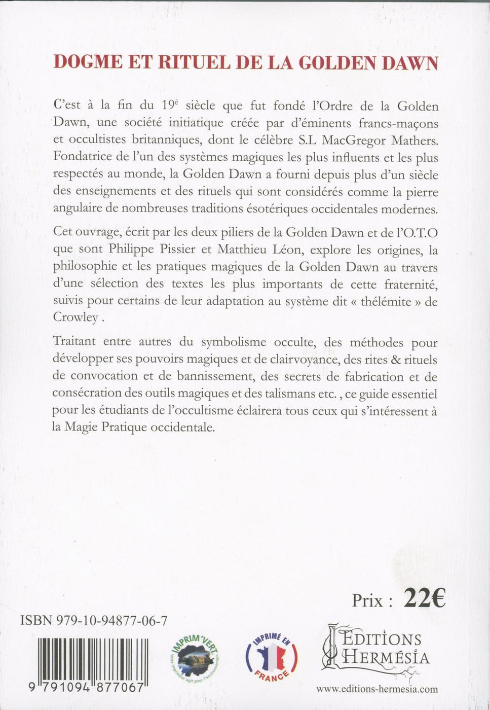 C'est à la fin du 19ème siècle que fut fondé l'Ordre de la Golden Dawn, une société initiatique créée par d'éminents francs-maçons et occultistes britanniques, dont le célèbre S.L MacGregor Mathers. Fondatrice de l'un des systèmes magiques les plus influents et les plus respectés au monde, la Golden Dawn a fourni depuis plus d'un siècle des enseignements et des rituels qui sont considérés comme la pierre angulaire de nombreuses traditions ésotériques occidentales modernes. Cet ouvrage, écrit par les deux piliers de la Golden Dawn francophone et de l'O.T.O que sont Philippe Pissier et Matthieu Léon, explore les origines, la philosophie et les pratiques magiques de la Golden Dawn au travers d'une sélection des textes les plus importants de cette fraternité, suivis pour certains de leurs adaptations au système dit "thélémite" de Crowley. Traitant entre autres du symbolisme occulte, des méthodes pour développer ses pouvoirs magiques et de clairvoyance, des rites & rituels de convocation et de bannissement, des secrets de fabrication et de consécration des outils magiques et des talismans etc., ce guide essentiel pour les étudiants de l'occultisme éclairera tous ceux qui s'intéressent à la Magie Pratique occidentale.