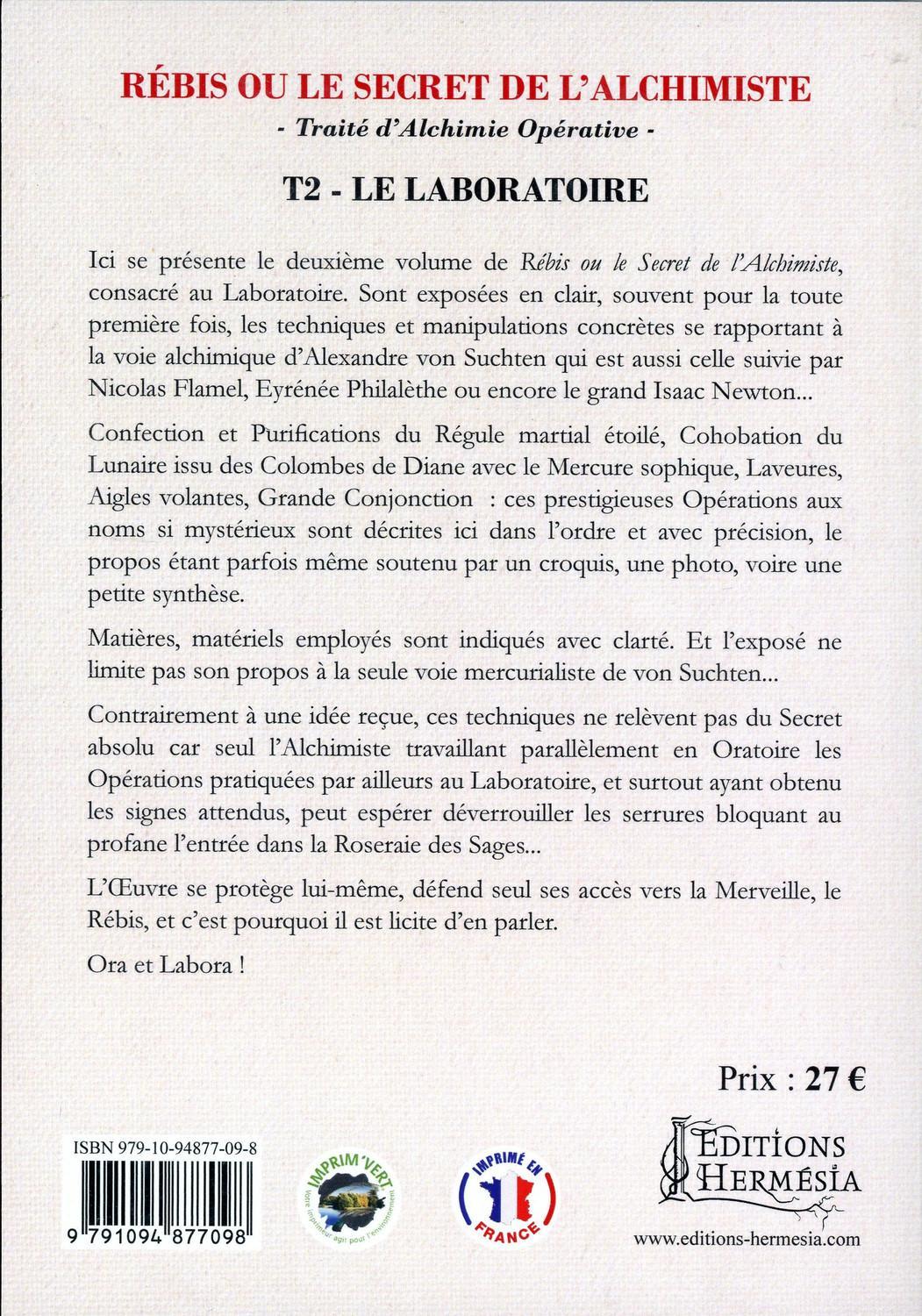 Ici se présente le deuxième volume de Rebis ou le Secret de l'Alchimiste, consacré au Laboratoire. Sont exposées en clair, souvent pour la toute première fois, les techniques et manipulations concrètes se rapportant à la voie alchimique d'Alexandre von Suchten qui est aussi celle suivie par Nicolas Flamel, Eyrénée Philalèthe ou encore le grand Isaac Newton... Confection et Purifications du Régule martial étoilé, Cohobation du Lunaire issu des Colombes de Diane avec le Mercure sophique, Laveures, Aigles volantes, Grande Conjonction : ces prestigieuses Opérations aux noms si mystérieux sont décrites ici dans l'ordre et avec précision, le propos étant parfois même soutenu par un croquis, une photo, voire une petite synthèse. Matières, matériels employés sont indiqués avec clarté. Et l'exposé ne limite pas son propos à la seule voie mercurialiste de von Suchten... Contrairement à une idée reçue, ces techniques ne relèvent pas du Secret absolu car seul l'Alchimiste travaillant parallèlement en Oratoire les Opérations pratiquées par ailleurs au Laboratoire, et surtout ayant obtenu les signes attendus, peut espérer déverrouiller les serrures bloquant au profane l'entrée dans la Roseraie des Sages... L'Oeuvre se protège lui-même, défend seul ses accès vers la Merveille, le Rebis, et c'est pourquoi il est licite d'en parler. Ora et Labora !