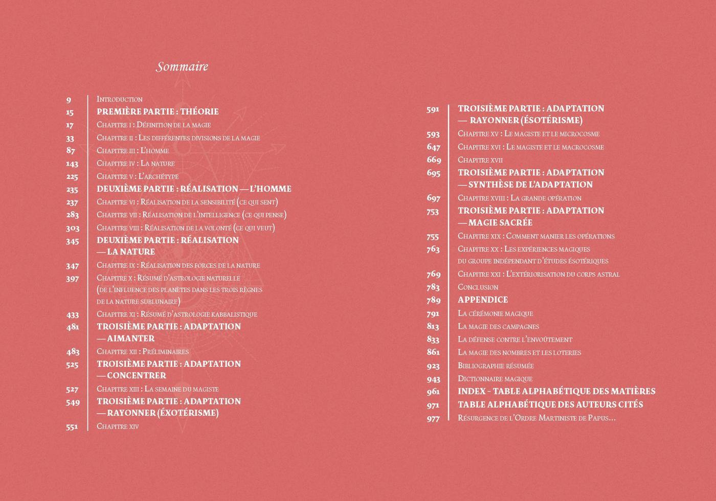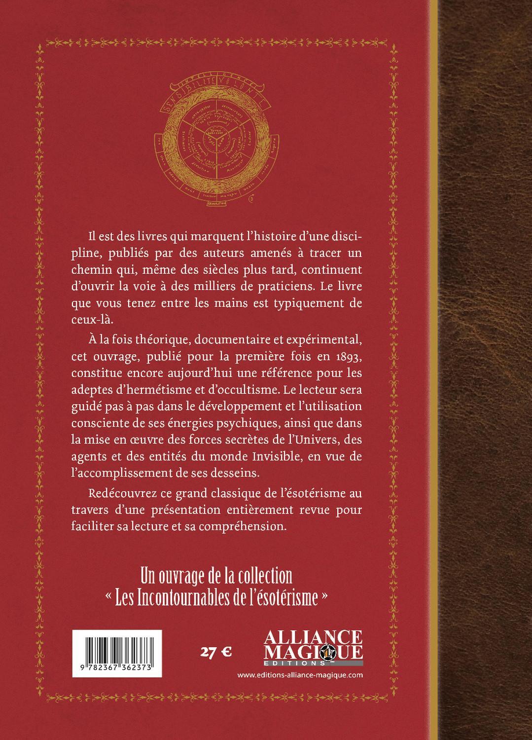 Il est des livres qui marquent l’histoire d’une discipline, publiés par des auteurs amenés à tracer un chemin qui, même des siècles plus tard, continuent d’ouvrir la voie à des milliers de praticiens. Le livre que vous tenez entre les mains est typiquement de ceux-là. À la fois théorique, documentaire et expérimental, cet ouvrage, publié pour la première fois en 1893, constitue encore aujourd’hui une référence pour les adeptes d’hermétisme et d’occultisme. Le lecteur sera guidé pas à pas dans le développement et l’utilisation consciente de ses énergies psychiques, ainsi que dans la mise en œuvre des forces secrètes de l’Univers, des agents et des entités du monde Invisible, en vue de l’accomplissement de ses desseins. Redécouvrez ce grand classique de l’ésotérisme au travers d’une présentation entièrement revue pour faciliter sa lecture et sa compréhension.