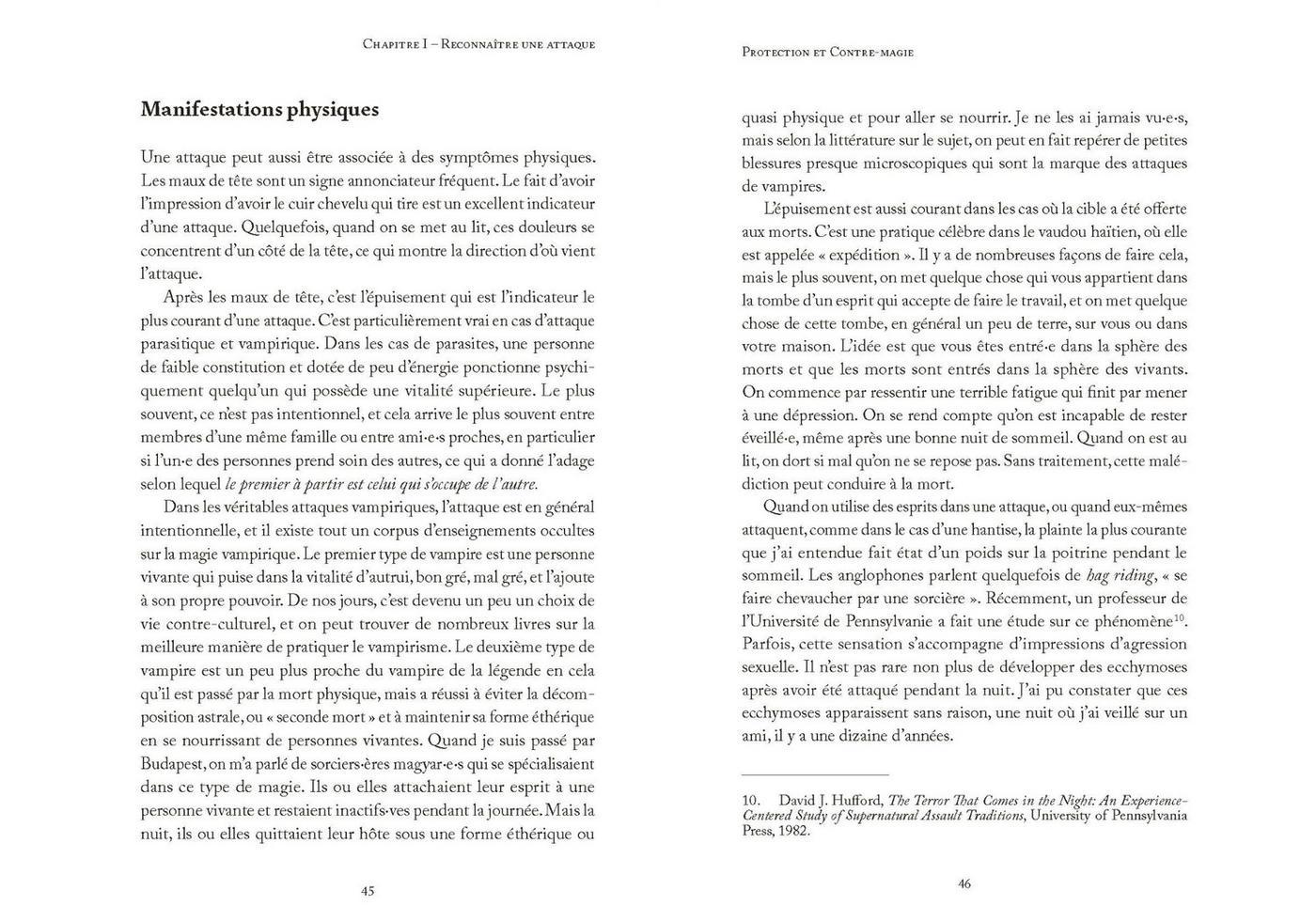 « La magie est réelle. Et tout ce qui est réel présente des dangers. » Que nous y croyions ou pas, que nous la pratiquions ou pas, la magie est bien là, tout autour de nous. Nous pouvons tous, sorciers ou non, être victimes de sorts et de malédictions. Grâce à Protection et Contre-magie, apprenez à vous défendre, vous et vos proches, contre les attaques psychiques. Jason Miller, sorcier de renom qui étudie la magie pratique depuis plus de trente ans, vous enseigne comment : reconnaître une attaque ; vous protéger, vous, vos proches et votre maison ; libérer une personne ou un lieu subissant une attaque ; renvoyer une attaque contre l’assaillant ; guérir et récupérer après une agression. Wiccans, sorcières, magiciens cérémoniels, rootworkers ou toute personne utilisant la magie opérative trouveront dans ce livre pratique et complet des clefs de défense contre les attaques, même les plus puissantes.