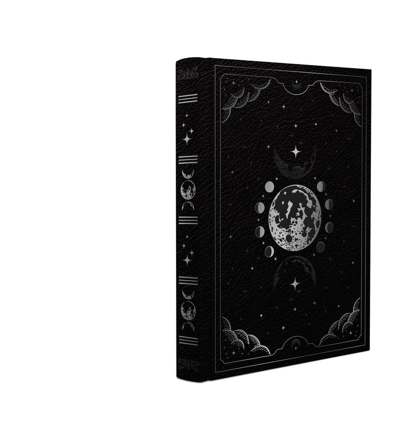 Ce carnet au format A5 (15 x 21) et à la couverture rigide, en similicuir et ornée de marquage argenté, deviendra votre compagnon idéal en tant que grimoire de pratique ou en tant que compagnon de route pour noter tout ce que vous souhaitez. Laissez-vous charmer par sa magnifique couverture sur le thème de la lune !