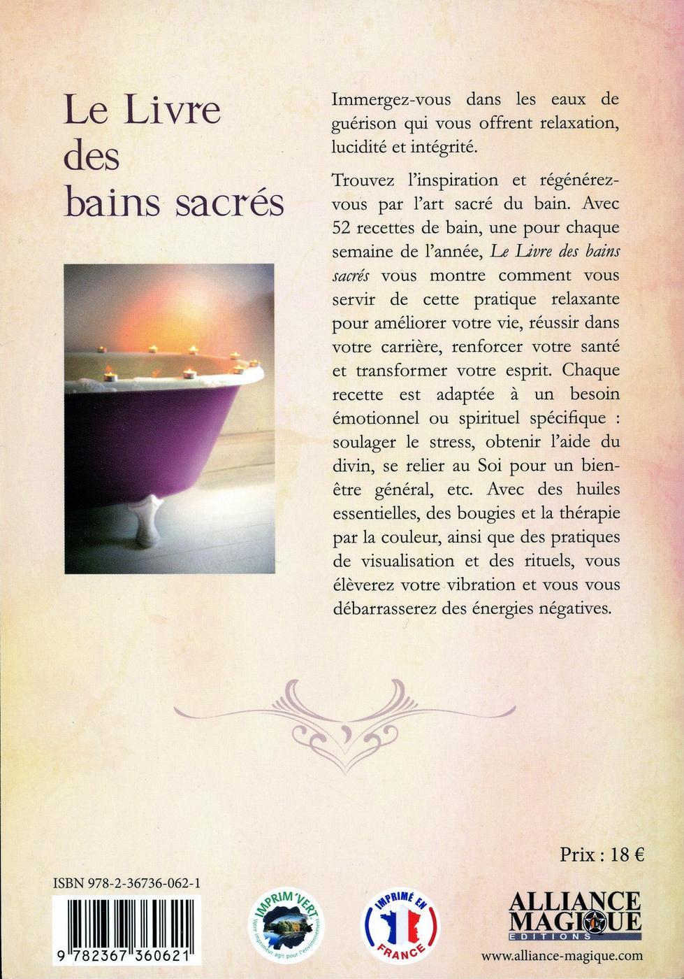 Immergez-vous dans les eaux de guérison qui vous offrent relaxation, lucidité et intégrité. Trouvez l'inspiration et régénérez-vous par l'art sacré du bain. Avec 52 recettes de bain, une pour chaque semaine de l'année, Le Livre des bains sacrés vous montre comment vous servir de cette pratique relaxante pour améliorer votre vie, réussir dans votre carrière, renforcer votre santé et transformer votre esprit. Chaque recette est adaptée à un besoin émotionnel ou spirituel spécifique : soulager le stress, obtenir l'aide du divin, se relier au Soi pour un bien-être général, etc. Avec des huiles essentielles, des bougies et la thérapie par la couleur, ainsi que des pratiques de visualisation et des rituels, vous élèverez votre vibration et vous vous débarrasserez des énergies négatives.