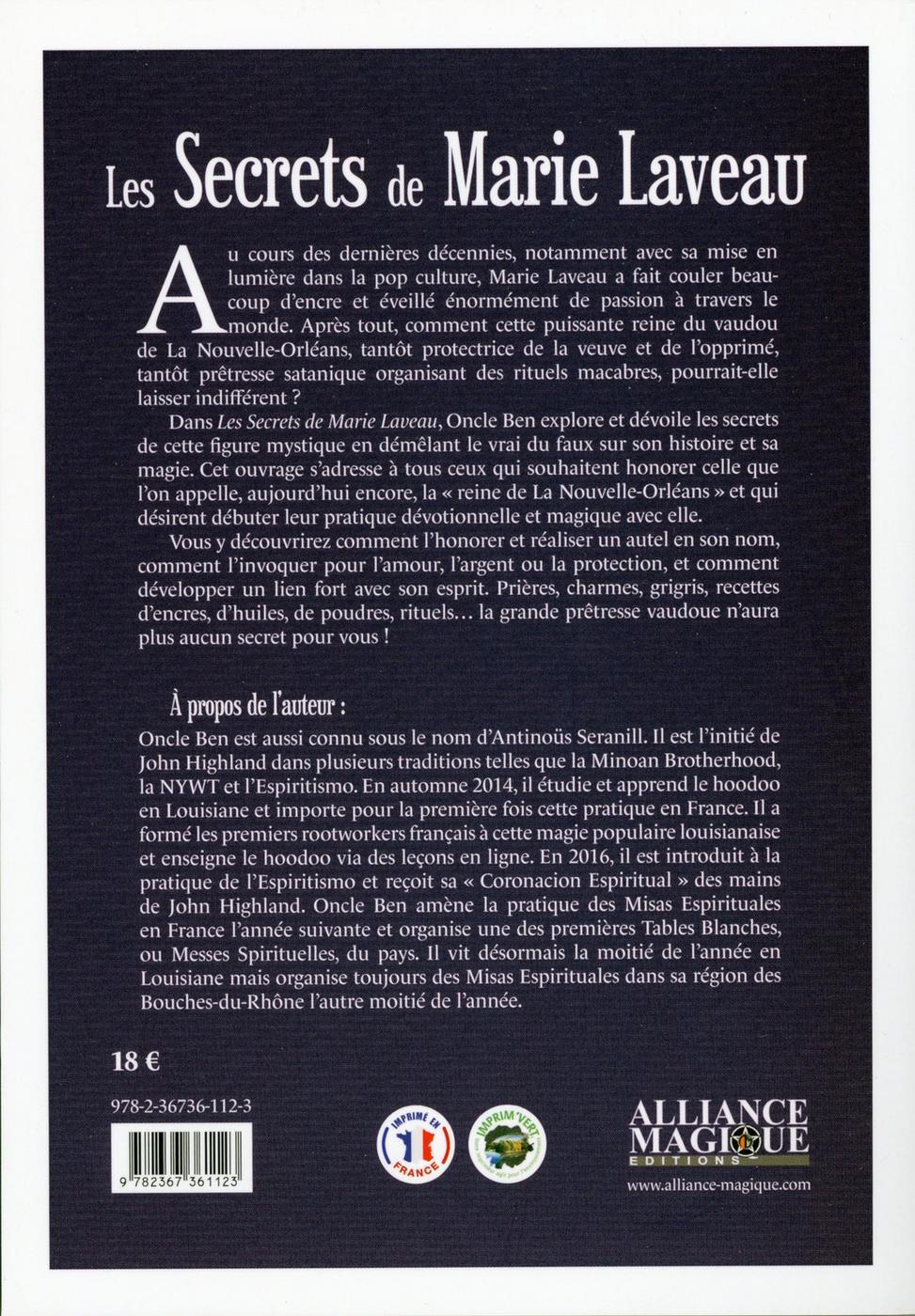 Au cours des dernières décennies, notamment avec sa mise en lumière dans la pop culture, Marie Laveau a fait couler beaucoup d’encre et éveillé énormément de passion à travers le monde. Après tout, comment cette puissante reine du vaudou de La Nouvelle-Orléans, tantôt protectrice de la veuve et de l’opprimé, tantôt prêtresse satanique organisant des rituels macabres, pourrait-elle laisser indifférent ? Dans Les Secrets de Marie Laveau, Oncle Ben explore et dévoile les secrets de cette figure mystique en démêlant le vrai du faux sur son histoire et sa magie. Cet ouvrage s’adresse à tous ceux qui souhaitent honorer celle que l’on appelle, aujourd’hui encore, la « reine de La Nouvelle-Orléans » et qui désirent débuter leur pratique dévotionnelle et magique avec elle. Vous y découvrirez comment l’honorer et réaliser un autel en son nom, comment l’invoquer pour l’amour, l’argent ou la protection, et comment développer un lien fort avec son esprit. Prières, charmes, grigris, recettes d’encres, d’huiles, de poudres, rituels… la grande prêtresse vaudoue n’aura plus aucun secret pour vous !