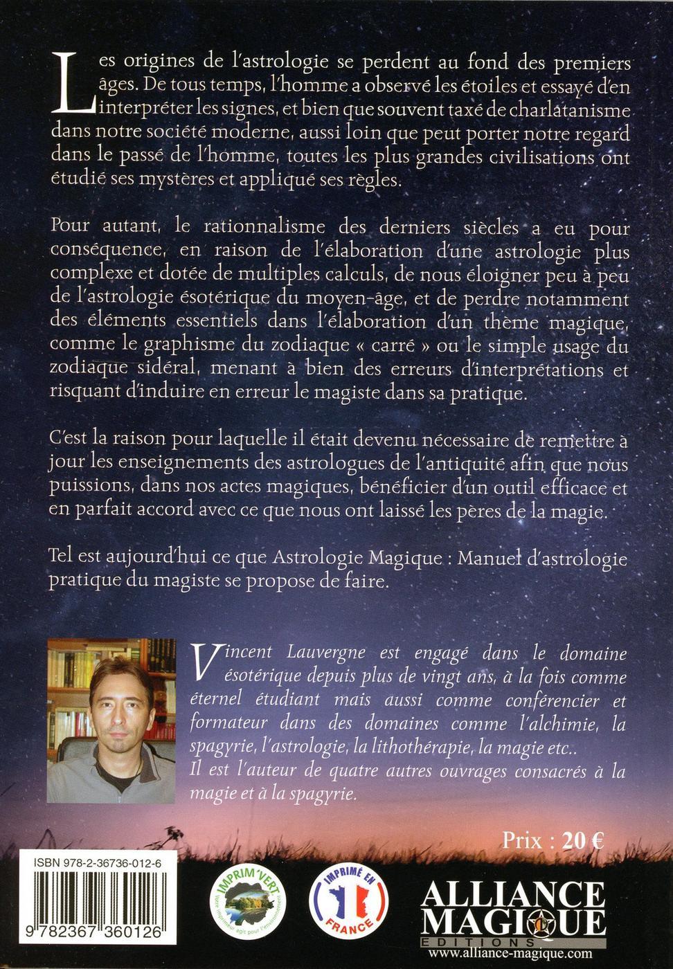 "Les origines de l'astrologie se perdent au fond des premiers âges. De tous temps, l'homme a observé les étoiles et essayé d'en interpréter les signes, et bien que souvent taxé de charlatanisme dans notre société moderne, aussi loin que peut porter notre regard dans le passé de l'homme, toutes les plus grandes civilisations ont étudié ses mystères et appliqué ses règles. Pour autant, le rationnalisme des derniers siècles a eu pour conséquence, en raison de l'élaboration d'une astrologie plus complexe et dotée de multiples calculs, de nous éloigner peu à peu de l'astrologie ésotérique du moyen-âge, et de perdre notamment des éléments essentiels dans l'élaboration d'un thème magique, comme le graphisme du zodiaque "carré" ou le simple usage du zodiaque sidéral, menant à bien des erreurs d'interprétations et risquant d'induire en erreur le magiste dans sa pratique. C'est la raison pour laquelle il était devenu nécessaire de remettre à jour les enseignements des astrologues de l'antiquité afin que nous puissions, dans nos actes magiques, bénéficier d'un outil efficace et en parfait accord avec ce que nous ont laissé les pères de la magie. Tel est aujourd'hui ce que Astrologie Magique : Manuel d'astrologie pratique du magiste se propose de faire."