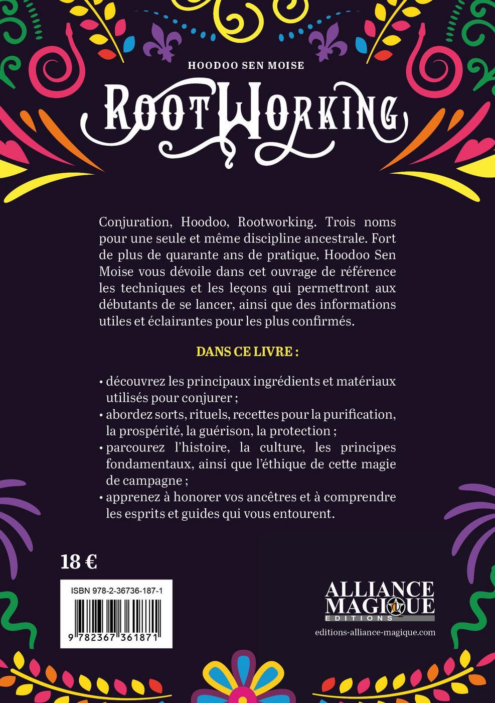 Conjuration, Hoodoo, Rootworking. Trois noms pour une seule et même discipline ancestrale. Fort de plus de quarante ans de pratique, Hoodoo Sen Moise vous dévoile dans cet ouvrage de référence, les techniques et les leçons qui permettront aux débutants de se lancer, ainsi que des informations utiles et éclairantes pour les plus confirmés. Dans ce livre : découvrez les principaux ingrédients et matériaux utilisés pour conjurer ; abordez sorts, rituels, recettes pour la purification, la prospérité, la guérison, la protection ; parcourez l'histoire, la culture, les principes fondamentaux, ainsi que l'éthique de cette magie de campagne ; apprenez à honorer vos ancêtres et à comprendre les esprits et guides qui vous entourent.