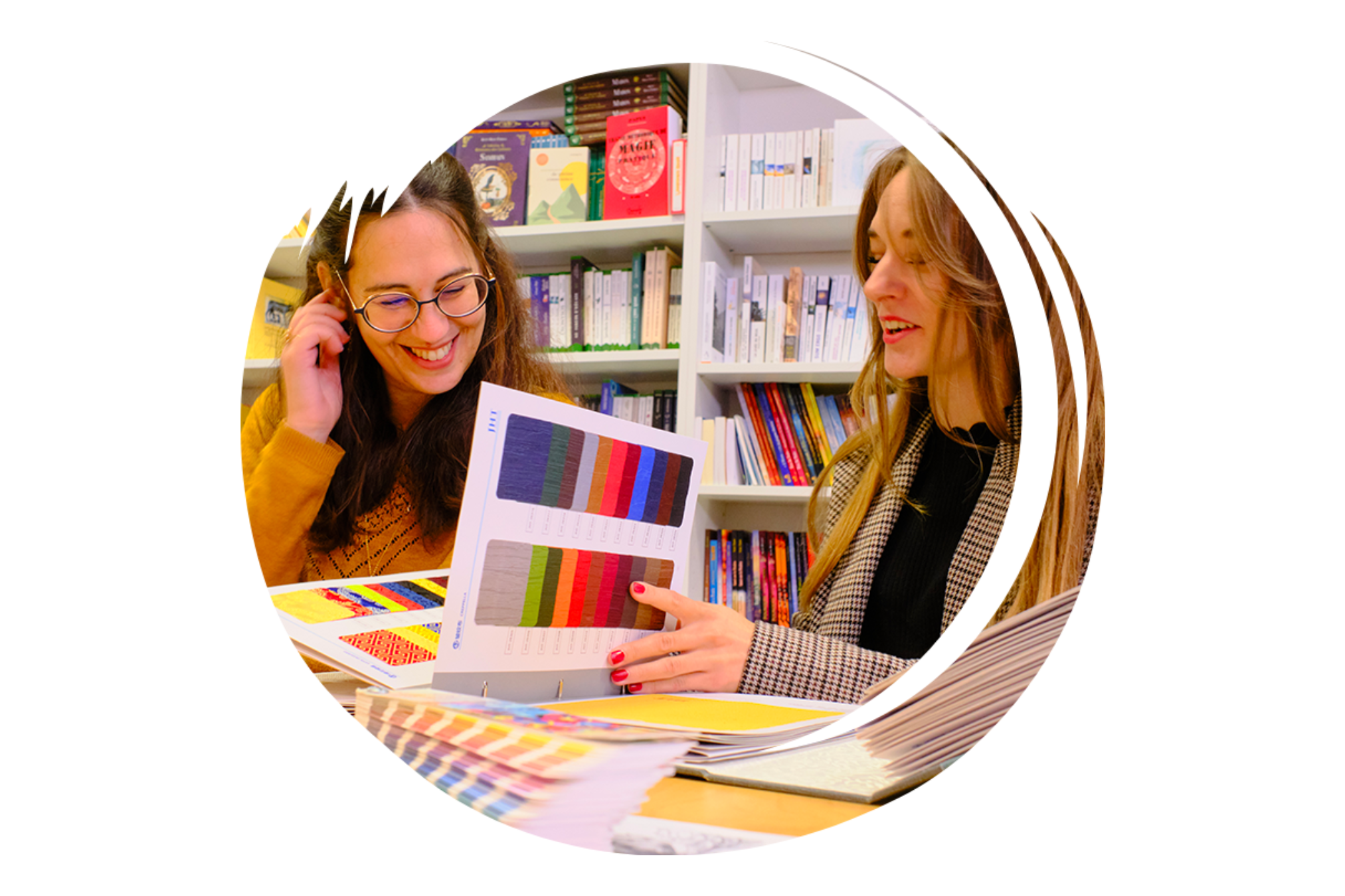 Marielle trouve toujours des idées originales et adaptées pour répondre aux demandes des auteurs et de leurs éditeurs. Livre relié, broché, vernis sélectif, pelliculage... Elle sait ce qui correspondra le mieux à chaque titre de la maison d'édition !